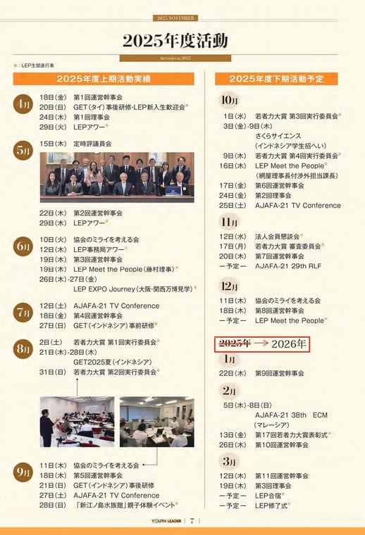 今月11月に発行した協会の広報誌YOUTHLEADER2025年秋号(Vol.154)の7ページに間違いがありましたので訂正いたします。